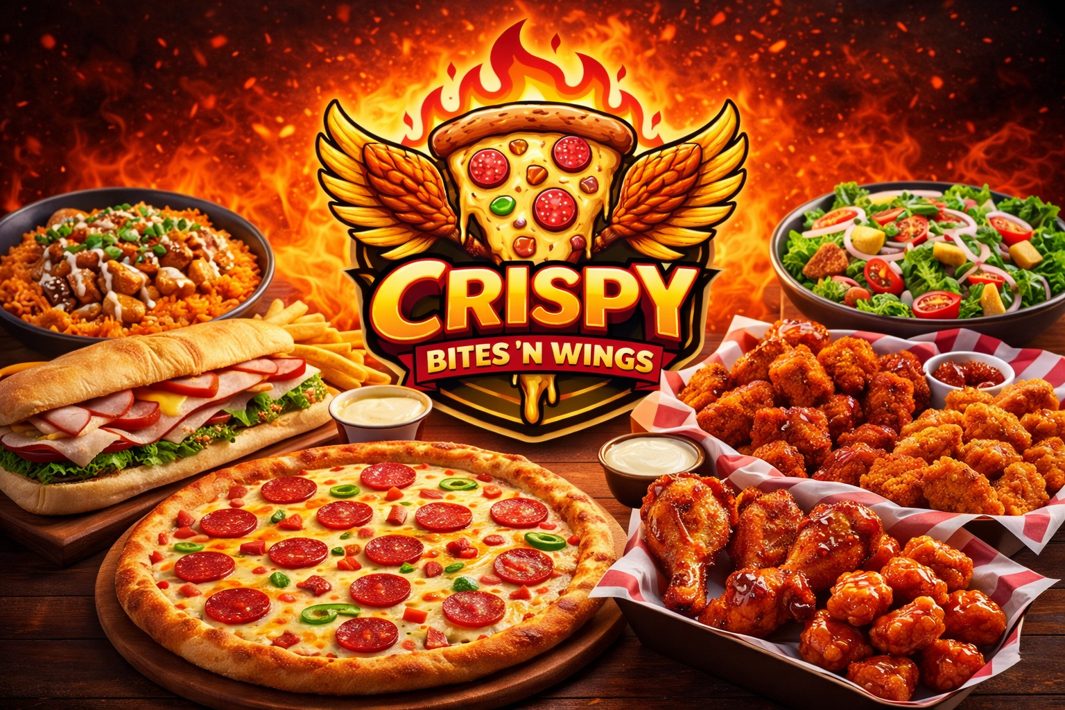At Crispy Bites N Wings, we serve fresh, flavorful food made to satisfy - from crispy wings and handcrafted pizzas to hearty subs and bowls. Quality ingredients, bold flavors, and fast service are what we do best.